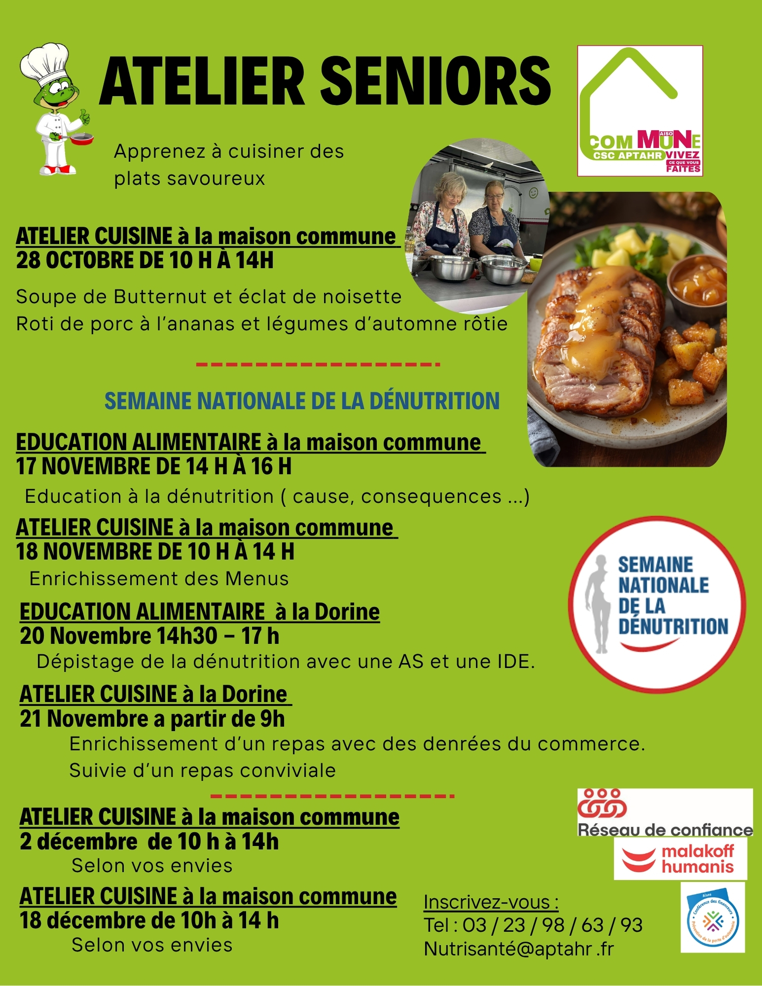 Plus d'infos, contactez Marjorie au 0323986393 ou à l'adresse seniors@aptahr.fr